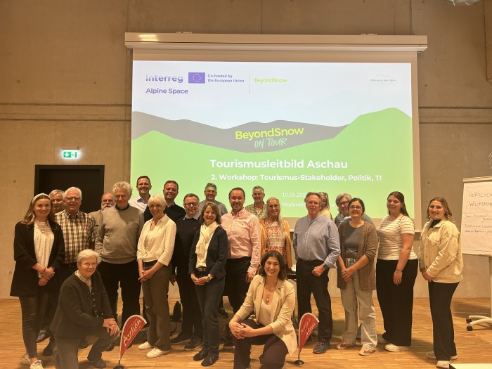 Plus de 20 participant·e·s, dont le premier maire Simon Frank, le directeur de l’office du tourisme Herbert Reiter, des employé·e·s de l’office du tourisme, des conseiller·ère·s municipaux·ales et des prestataires de services de la commune ont pris part à l’atelier le 10 mai 2025. Katharina Gasteiger du réseau des communes Alliance dans les Alpes (AidA) a animé l’atelier qui s’est déroulé dans le cadre du projet BeyondSnow, auquel AidA participe en tant que partenaire. BeyondSnow est un projet Interreg qui se consacre à la question de savoir comment les communes et les régions font face à la diminution de la neige.