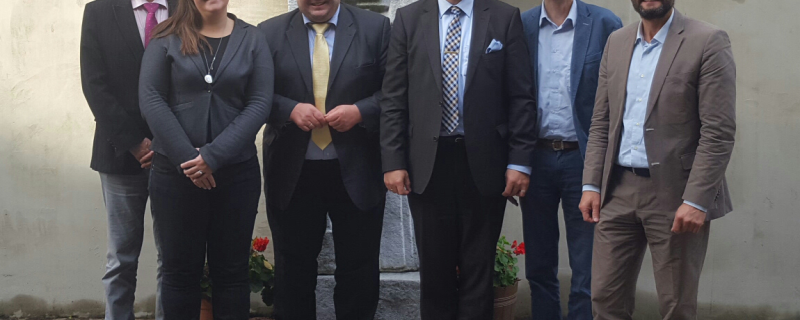 Sur la photo de gauche à droite : Armin Schabus – Land de Carinthie, Taja Ferjančič-Lakota – Secrétariat permanent de la Convention alpine, Markus Reiterer – Secrétaire général de la Convention alpine, Ewald Galle – Président du Comité national autrichien pour la Convention alpine, Robert Unglaub – Alliance carinthienne pour la Convention alpine, Peter Plaimer – "Alliance dans les Alpes" Région Carinthie du Sud