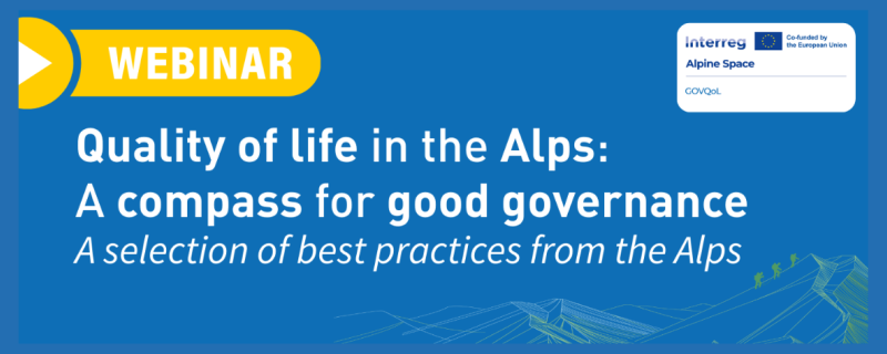 Le 3 mars, un autre webinaire aura lieu dans le cadre du projet Interreg AlpineSpace GOVQoL. Il sera axé sur les certifications comme outil permettant aux communes d'améliorer la qualité de vie. Cliquez ici pour vous inscrire.